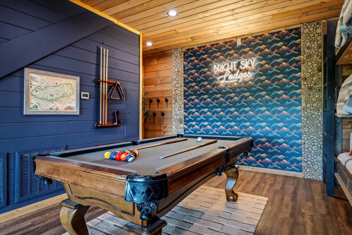 Our cabins have Game Room, a Gaga Ball Court (Stargazer Lodge), a Pickle Ball / Multi Sport Court, Yoga Deck, and some selected sports equipment (Rainbow Falls Lodge) This room is perfect for kids of all ages with numerous games and activities!